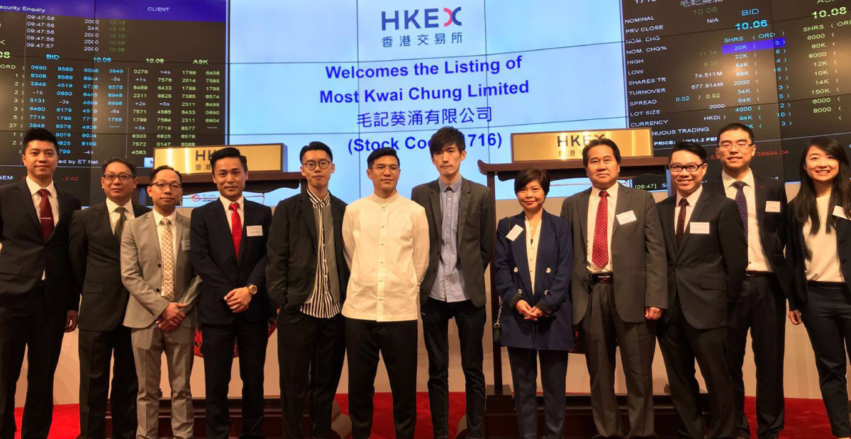 毛記於掛牌前一天已引發全城哄動,暗盤收巿價達8.1元,升逾5.7倍。3月28日,毛記掛牌當天,致富證券資產管理業務兼投資研究主管鄧澤堂先生(Nic)和致富證券企業融資部聯席董事莊志豪先生(Eric)亦代表致富出席毛記於港交所的「敲鑼」儀式,見證毛記矚目上巿。上巿當日,毛記成為全城焦點。當天中午收市前更高見11.76元,成交超過12億元!當晚,致富證券業務主管郭家安先生(Thomas)和Nic也一同出席毛記的祝捷晚宴,與毛記三位創辦人及投資者同樂暢飲,慶祝「新股王」的誕生!