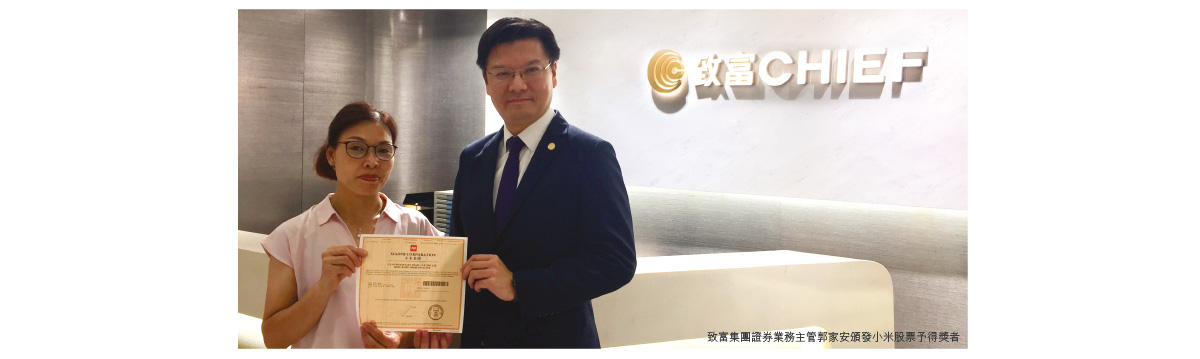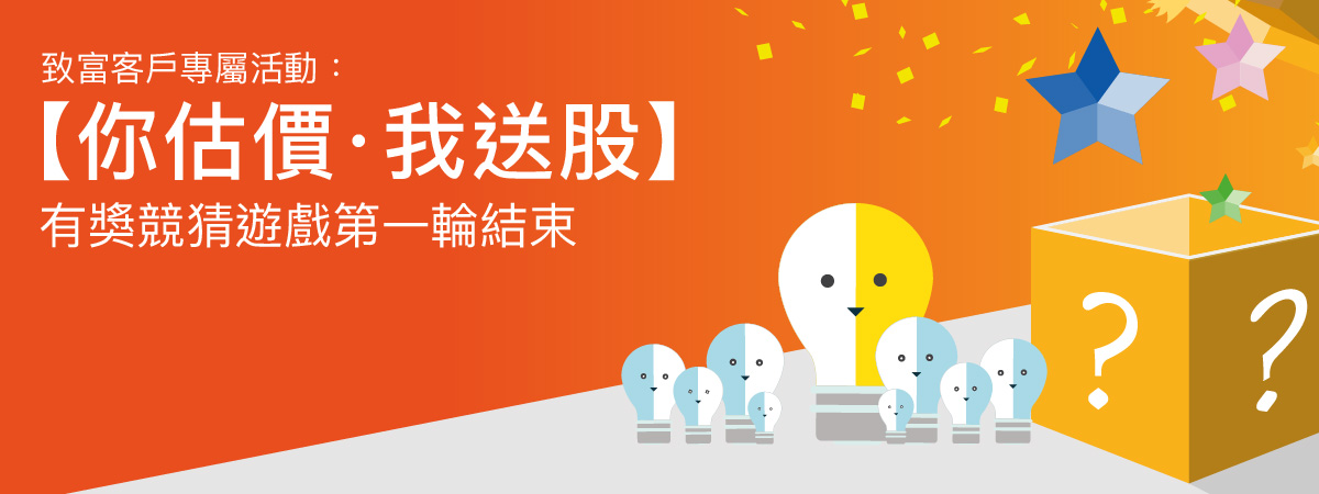 「您估價.我送股有獎競猜遊戲」第一輪遊戲「考眼光 贏走一手小米」已圓滿結束。遊戲反應熱烈,謝謝各位踴躍參加。第一輪競猜的正確答案如下:開市價:HK$16.6 ;最高價:HK$ 17。第一輪遊戲得獎名單已於致富Facebook專頁內公佈,恭喜所有眼光獨到得獎者!