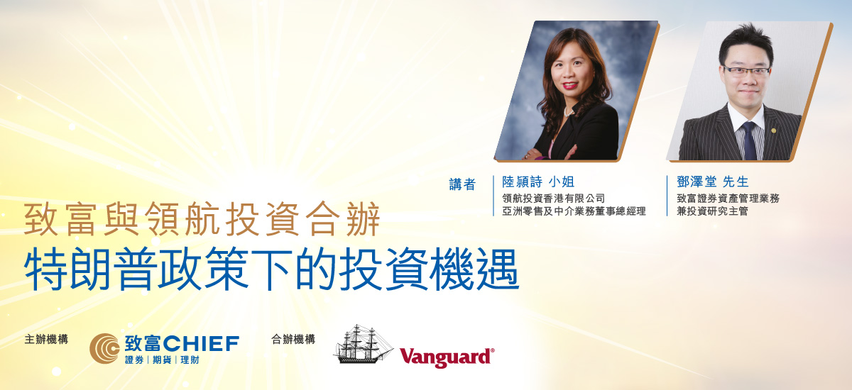 講師: 領航投資香港有限公司亞洲零售及中介業務董事總經理 陸頴詩小姐 致富證券資產管理業務兼投資研究主管 鄧澤堂先生