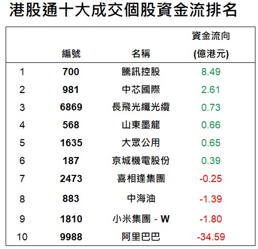 科網股普遍向下,英國報道指美國傳討論是否允騰訊(700.HK)保留其遊戲公司股權,股價跌0.8%。阿里巴巴(9988.HK)跌3.6%、惟小米(1810.HK)逆市升1.3%。憂慮戰爭時間持續延長,金融股沽壓較大,友邦(1299.HK)跌4.7%,為表現最差藍籌。滙控(5.HK)跌3.8%、渣打(2888.HK)跌0.7%。