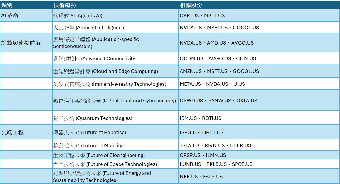 報告將其分為三大類別:AI革命、計算與連接前沿,以及尖端工程。