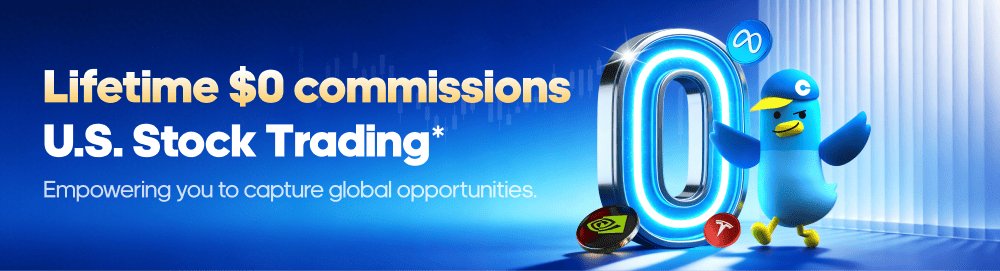 *「Lifetime $0 Commissions U.S. Stock Trading」is subject to the applicable terms and conditions of Chief Securities Limited. Eligible clients must meet and maintain the specified requirements. To retain eligibility, the client must complete at least one U.S. stock trade every 12 months while the account remains active; otherwise, standard commission rates will apply. The offer only applies to U.S. stock trading services in Hong Kong provided by Chief Securities Limited. “$0 commissions” means Chief Securities Limited does not charge trading commissions on U.S. stock buy and sell orders; other fees such as platform fees, regulatory fees, clearing fees, FX conversion fees and any applicable third‑party charges may still apply and will be fully disclosed to clients.