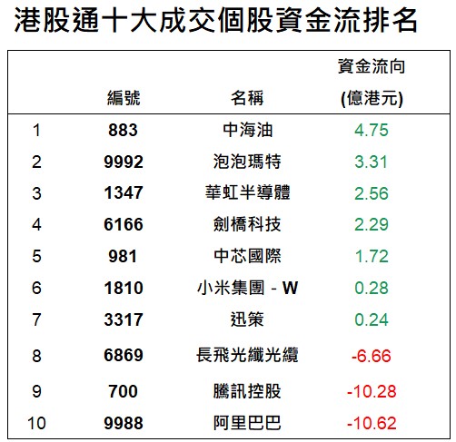 科網股拖累大市表現,阿里巴巴(9988.HK)跌3.5%、美團(3690.HK)跌2.5%、騰訊(700.HK)跌2.9 %、京東集團(9618.HK)跌2.2%、百度(9888.HK)跌2.8%、小米(1810.HK)跌1.8%。
